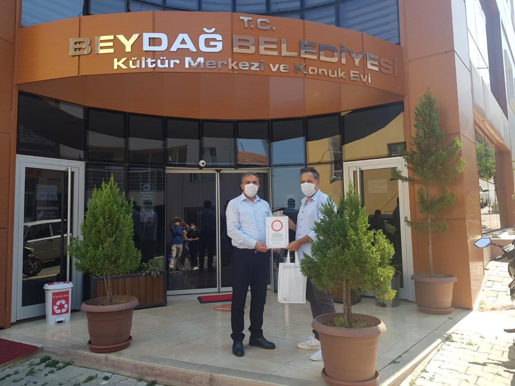 Turuncu Çember sertifikasının son derece ciddi değerlendirmeler ve çalışmalar neticesinde alındığın ifade eden Beydağ Belediye Başkanı feridun Yılmazlar, “Belediye ruhsatlı konaklama ve yeme içme tesislerinde uygulanacak ve bu standartlara sahip işletmelerin Turuncu Çember sertifikasıyla ödüllendirileceğini öğrenince biz de Beydağ Belediyesi olarak bu uygulamaya başvurduk. koronavirüs salgınında kontrollü normalleşme sürecine geçilmesiyle birlikte İzmirlilerin güvenle vakit geçirebilecekleri alanlar oluşturulmak amacıyla tasarlanmış bir sertifikasyonu almaya hak kazandık. İzmir’in sağlıklı ve turizm sektörü açısından güvenli bir kent olarak öne çıkmasını sağlamak amacını taşıyan bu uygulamada yer almak bizim için çok değerli. Çünkü bu sertifikaya sahip işletmelerin yurt içi ve yurt dışında tanıtımları yapılarak sektörün güçlü kalmasına da katkı veriliyor. Biz de Beydağ Belediyesi olarak İzmir Büyükşehir Belediyemizin başlattığı bu çok değerli çalışmayı destekliyoruz. Bu nedenle tüm işletmelerimizi kriterlere uyacak biçimde yeniden düzenledik, Beydağlılara ve gelecek olan tüm misafirlerimize güvenli ortamlar sağladık.” dedi.