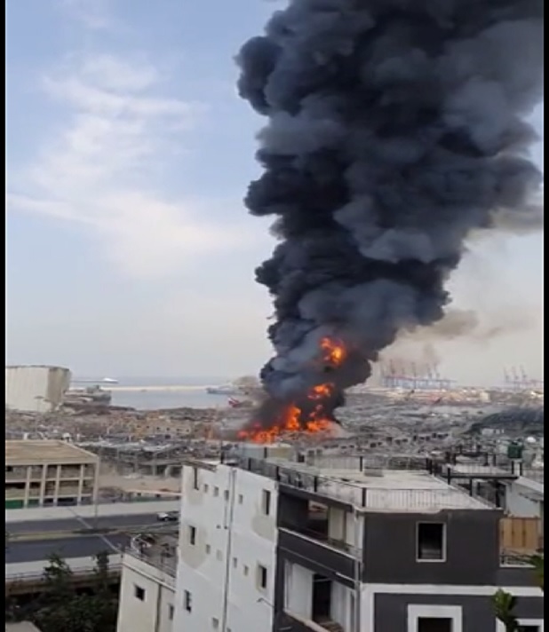 Lübnan'ın başkenti Beyrut'ta yaklaşık 190 can alan ve çevreyi harabeye çeviren limandaki patlamadan bir ay sonra aynı bölgede yangın çıkması, şehir sakinlerinde panik yarattı. Beyrutlular "Yüzümüz hiç gülmeyecek mi, felaketler hiç bitmeyecek mi" diyerek şehri kapkara duman bulutu altında bırakan yangından görüntüleri sosyal medyada paylaştı.