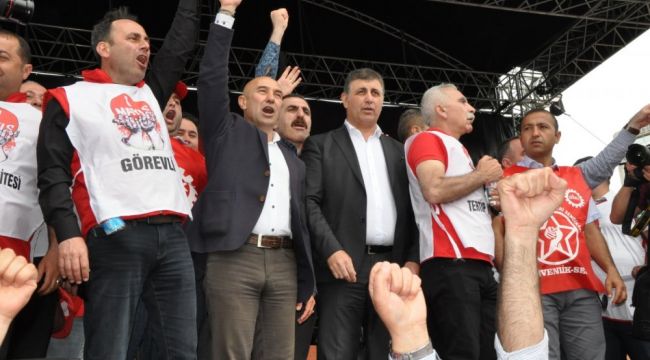 İşçi bayramı kutlamalarına vatandaşların yanı sıra CHP’lilerden de yoğun katılım geldi. CHP İzmir İl Başkanı Deniz Yücel, ilçe başkanları, ilçe belediye başkanları, meclis üyeleri ve partililer CHP İzmir İl binası önünde oluşturdukları kortej eşliğinden alana geldi. İzmir Büyükşehir Belediye Başkanı Tunç Soyer ise Büyükşehir önünde başlayan kortej ile Gündoğdu’ya giriş yaptı.