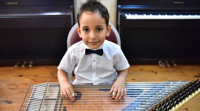 Bornova Belediyesi'nin Hobi ve Beceri Edindirme Kursları bünyesinde verdiği Kanun Eğitimi, yaz döneminde de devam ediyor. Kanun kursunun minik kursiyeleri yetenekleri ile dikkat çekiyor. Türk Sanat Müziği'nin temel estrümanlarından olan kanun, daha çok yetişkinler tarafından çalınsa da 6 yaşındaki Burak Korkmaz ile 7 yaşındaki Naz Su Altıner'in de ilgisini çekti. Burak altı ay, Naz Su ise sadece 1 ay önce başladıkları kursta hangi estrüman olursa olsun yaş sınırı olmadığını kanıtlıyor.
