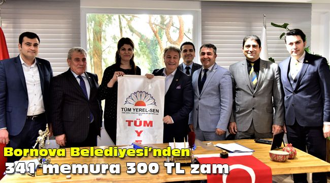 Bornova Belediyesi’nde 297 memur ile 44 sözleşmeli memuru kapsayan toplu iş sözleşmesinde imzalar atıldı. bornova Belediye Başkanı Dr. mustafa İduğ ve Tüm Yerel-Sen Genel Başkanı Arap Mucur’un attığı imza ile ilgili personelin maaşları merkezi hükümetin yaptığı zamma ek olarak 300 TL daha arttı.