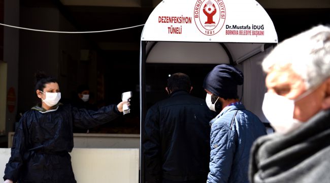 Koronavirüs salgınına karşı pazar yerlerine yönelik önlem ve denetlemelerini arttıran bornova belediyesi ekipleri, girişlerin tek noktadan yapıldığı pazara gelen vatandaşlara maske dağıtıp, ateş ölçümlerini yaptı ve dezenfeksiyon tünelinden geçirdikten sonra içeri aldı. Giriş-çıkışların ayrı noktalardan kontrollü olarak yapıldığı pazarlara gelen 65 yaş üzeri ve 20 yaş altı vatandaşlar pazara alınmadı. Esnafta gün içinde yapılan anonslarla mutlaka maske ve eldiven kullanmaları yönünde sık sık uyarıldı. Merkez Pazaryeri gibi her Çarşamba kurulan Çamdibi Kapalı Pazaryeri’nde de maske dağıtımı ve ateş ölçümü yapıldı.