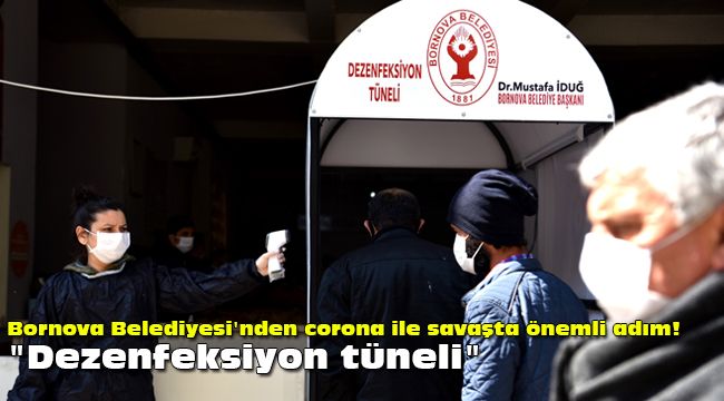 Tüm imkanlarını koronavirüs salgınının yayılımını önlemek için seferber eden Bornova Belediyesi, maske ve kolonya üretiminin ardından dezenfektan tüneli imal etmeye başladı. Fen İşleri Müdürlüğü Atölyesi’nde yapılan ilk kabin, Bornova Merkez Pazaryeri’nde kullanıldı.