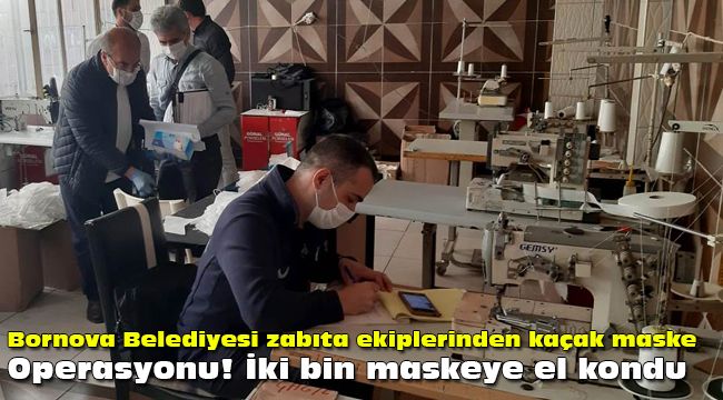 Gelen bir ihbar üzerine Pınarbaşı Mahallesi 7300 sokaktaki binaya denetime giden bornova belediyesi zabıta ekipleri; iş yeri açma ve çalıştırma ruhsatı bulunmayan kaçak atölye kurulduğunu, maske üretmek için gerekli koşulların sağlanmadığı, maske, bone, eldiven gibi koruyucu hiçbir tedbir almadan, hijyenik olmayan koşullarda maske üretim yapıldığını tespit etti.
