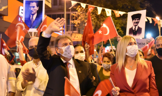 Binlerce kişinin ellerinde ay-yıldızlı bayrakları ile katıldığı fener alayının ardından gerçekleşen konserde unutulmaz bir gece yaşandı. Konser alanı dolduran Cumhuriyet sevdalılarına Andımız’ı okutan ve sahneye çıkarak Fatih Erkoç’a bir şarkısında eşlik eden Bornova Belediye Başkanı Dr. Mustafa İduğ, “Büyük Önderimiz Mustafa Kemal Atatürk’ün bizlere emanet ettiği Cumhuriyetimizi sonsuza kadar yaşatacağız” dedi.Bornova Belediyesi’nin 9 Eylül etkinlikleri 8 Eylül akşamı düzenlenen fener alayı ile başladı. Bornova Cumhuriyet Meydanı’ndan başlayan kortej geçişi Aşık Veysel Rekreasyon Alanı’nda son buldu. Binlerce kişi katıldıBornova Belediye Başkanı Dr. Mustafa İduğ Eşi Ufuk İduğ, CHP Bornova İlçe Başkanı Ertürk Çapın, İyi Parti Bornova İlçe Başkanı Mustafa Tabak, Belediye meclis üyeleri, bürokratları ve Türk Kızılay Bornova Şube Başkanı Cemil Kurkut ile birlikte halkı selamladı. Spor kulüpleri, dernekler ve çok sayıda vatandaşın katıldığı yürüyüşte Mustafa Kemal Caddesi kırmızı-beyaza boyandı. Bando eşliğinde söylenen söylenen marşlara Bornovalılar evlerinin balkonlarından da eşlik etti.Unutulmaz bir geceFener alayının son bulunduğu Aşık Veysel Rekreasyon Alanı’ndaki Amfi Tiyatro’da ise Türk Pop Müziği’nin yıllara meydan okuyan ismi Fatih Erkoç hayranları ile buluştu. Caz Trompet Sanatçısı, Besteci Tolga Bilgin ve Friends Bigband eşlik ettiği efsane sanatçı unutulmaz şarkılarını Bornovalılar için söyledi. Fatih Erkoç’un Türkçe ve İngilizce şarkılarına amfi tiyatroyu dolduran binlerce Bornovalı eşlik etti.Başkan İduğ Andımız’ı okuttuSahneye çıkan Bornova Belediye Başkanı Dr. Mustafa İduğ, konseri izlemeye gelen vatandaşlara andımızı okuttu. İduğ, sahnede birlikte şarkı da söylediği Fatih Erkoç’a ve Tolga Bilgin’e zeytin fidanı hediye etti. Coşkulu kalabalığa seslenen Başkan İduğ, unutulmaz bir gece yaşatan Fatih Erkoç’a ve orkestrasına teşekkür ederken, “9 Eylül 1922 Türkiye’nin sınırlarının çizildiği tarihtir. Böylesi önemli bir günün 99. yılında Mustafa Kemal Atatürk ve silah arkadaşlarını saygı ve minnetle anıyorum. Onların bize emanet ettiği Cumhuriyetimizi sonsuza kadar yaşatacağız” dedi.Coşku dolu konser hep bir ağızdan söylenen İzmir Marşı ile son buldu.