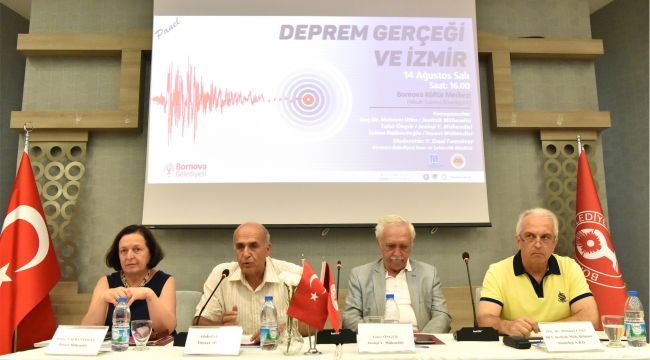 Bornova Belediyesi ve jeofizik mühendisleri odası İzmir Şubesi 17 Ağustos Depremi’nin 19’uncu yılında, deprem öncesinde alınması gereken tedbirleri hatırlatmak ve vatandaşları bilinçlendirmek amacıyla bornova Kültür Merkezi’nde ‘Deprem Gerçeği ve İzmir’ konulu bir panel düzenledi.