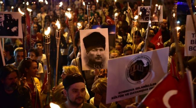 20:30'da başlayacak fener alayı yürüyüşüne katılmak isteyenler için saat 19:30'da Bornova Cumhuriyet Meydanı'ndan otobüsler kaldırılacak.
