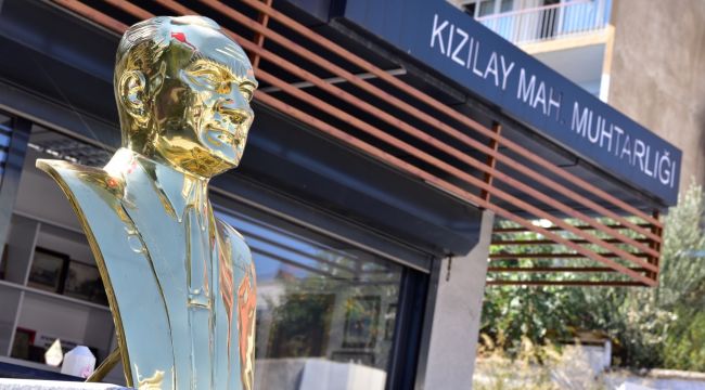Mahalle muhtarlarının vatandaşa daha iyi hizmet verebilmeleri için ilçedeki muhtarlıkları yenileyen bornova Belediyesi, modern ofisleri aratmayan muhtarlık binalarının önüne atatürk büstü koydu. Yine Büyük Önder’e ait; “Ne mutlu Türküm diye” yazılı 1.5 metrelik granit kaidenin üzerine oturtulan Pirinç kaplama Atatürk büstü, yeni muhtarlık ofisleriyle uyumlu biçimde, estetik şekilde yerini aldı.