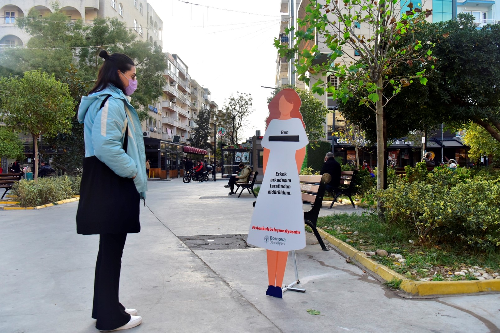Erkekler tarafından katledilen 10 kadının son sözlerinin yer aldığı gerçek boyutlarda kadın silueti şeklindeki kartonet maketler ve 25 Kasım’ın önemine dikkat çekilen pankartlar aracılığıyla kadın cinayetleri hakkında farkındalık yaratılıyor.Katledilen kadınların hatırasını yaşatmak üzere hazırlanan maketler, Büyükpark, Bornova Cumhuriyet Meydanı ve Küçükpark gibi kentin en işlek noktalarına yerleştirildi. Kartonetten üretilen kadın silueti şeklindeki maketlerde son yıllarda katledilen ve kadın mücadelesinin sembol isimleri haline gelen kadınların son sözleri yer alıyor. Ayrıca “İstanbul Sözleşmesi yaşatır” sloganıyla da son dönemde yeniden tartışmaya açılan İstanbul Sözleşmesi’nde yer alan maddelerin, kadın cinayetlerinin önlenmesi açısından önemine dikkat çekiliyor.Bornovalı kadınlar 25 Kasım’a hazır