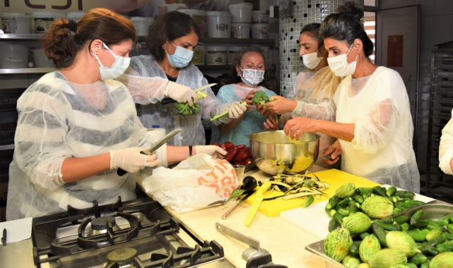Bornova Belediye Başkan Yardımcısı Barbaros Taşer ve Bornova İlçe Tarım Müdürü Mustafa Akarca’nında katıldığı atölye çalışmasında kadınlara katılım belgesi verildi. Ev yapımı ürünlerin daha sağlıklı olduğunu ifade eden Bornova Belediye Başkanı Dr. Mustafa İduğ, “Nitelikli tarımın gelişmesi ve tarım ürünlerinin doğru biçimde değerlendirilmesi ülke ekonomimiz açısından çok önemli. Bu eğitimlerle Bornovalı kadınlara evde yapabilecekleri doğal yiyecekler konusunda bilgilendiriyoruz. Bu daha sağlıklı olduğu gibi aile bütçelerine de fayda sağlayacaktır” dedi. Mutfakta Buluşalım etkinlikleri 16 Eylül’de Reçel Atölyesi, 17 Eylül de ise Pestil Atölyesi ile devam edecek.