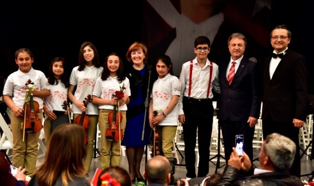 Cumhuriyet Bayramı Özel Konseri’nde Şef Tolga Akın yönetiminde sahneye çıkacak olan çocuklar, Cumhuriyetin 99. Yılı için notalara basacak. Bayram coşkusunu yansıtan birçok klasik müzik eserinin seslendirileceği etkinlikte katılımcılara unutulmaz bir müzik ziyafeti sunulacak. Ayrıca etkinlikte yazar Eda Albayrak da ‘Bir Cumhuriyet Hikayesi’ ile izleyicilerle birlikte olacak.Başkan İduğ’dan konsere davetÖzel Konser öncesi İnci Vakfı Onursal Başkanı Şerife İnci Eren ve İnci Vakfı Güç Kaynağı Ece Elbirlik Ürkmez Bornova Belediye Başkanı Dr. Mustafa İduğ’u ziyaret etti. Konserde sahneye çıkan çocukların müziğe İnci Vakfı Çocuk Orkestrası ile başladıklarını belirten Bornova Belediye Başkanı Dr. Mustafa İduğ, “Çocuk Senfoni Orkestrası projesi müzikal başarı kadar gençlerin sosyalleşmesi ve bir bütünün parçası olması açısından da büyük önem taşıyor. bornova belediyesi olarak böyle özel bir çalışmanın içinde yer almak ve bunu sürdürülebilir kılmak bizim için gurur verici. Tüm İzmirlileri, bu özel günde çocuklardan oluşan orkestranın sesine kulak vermeye davet ediyorum" dedi.İnci Vakfı Onursal Başkanı Şerife İnci Eren ve İnci Vakfı Güç Kaynağı Ece Elbirlik Ürkmez ise Bornova Belediyesi ile yaptıkları işbirliğinin uzun yıllardır devam ettiğini belirterek verdiği destek için Bornova Belediye Başkanı Dr. Mustafa İduğ’a teşekkür etti.