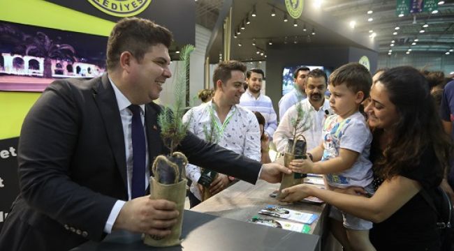Fuarda çam fidanlarının dağıtımını gerçekleştiren Buca Belediye Başkanı Av. Erhan Kılıç, ziyaretçilere çevre mesajları verirken fuara katılan belediye başkanlarına da fidan dağıttı. Yeşil alanların korunması ve arttırılması için duyarlılık çağrısı yapan Erhan Kılıç, belediye başkanlarına hediye ettiği fidanları belediye binaları önüne dikmelerini rica etti.