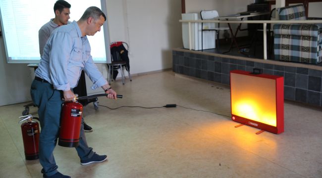 Buca Belediyesi’nin, İzmir Büyükşehir Belediyesi İtfaiye Daire Başkanlığı iş birliği ile belediye personelini yangın ve deprem konusunda bilinçlendirme eğitimleri sürüyor. Toros Yangın ve Doğal Afet Eğitim Merkezi’nde verilen eğitimlerde acil durumlarda tahliye, yangın anında hareket ve müdahalenin yanında özel düzenekli simülatörde deprem anı yaşatılarak korunma yöntemleri öğretiliyor.