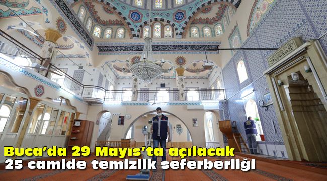 İlk olarak 29 Mayıs’ta kılınacak Cuma namazı öncesi buca belediyesi Sosyal Yardım İşleri tarafından camilerde hummalı temizlik çalışması başlatıldı. Buca’da kullanıma açılacak 25 cami başta olmak üzere toplam 84 cami temizlendi. Bucalı hemşerilerin temiz ve sağlıklı ortamlarda ibaretlerini gerçekleştirebilmeleri için köşe bucak çalışan ekipler, cami içindeki halıları profesyonel makinelerle süpürüp yıkadı. Camilerdeki ayakkabılıklar, kapı, cam ve duvarların silip, minber temizliğini geniş çaplı bir şekilde gerçekleştirdi.