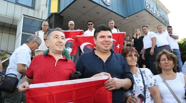 Al bayraklarla donatılan sokakların ardından buca belediyesi hizmet binası önünde ise ev ve iş yerlerinde asılmak üzere bayrak dağıtımı gerçekleştirildi. Buca Belediye Başkanı Av. Erhan Kılıç, üzerinde Mustafa Kemal Atatürk’ün portresinin olduğu ay yıldızlı Türk bayraklarını Bucalılara hediye etti.