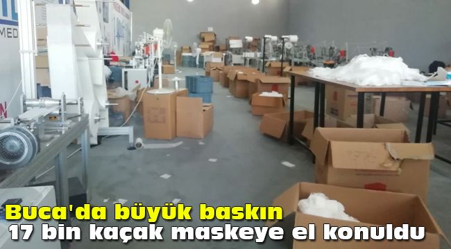 dışı ve izinsiz üretim yaptığını belirleyen ekipler 17 bin adet maskeye el koyarken, plastik ve ambalaj üretimi