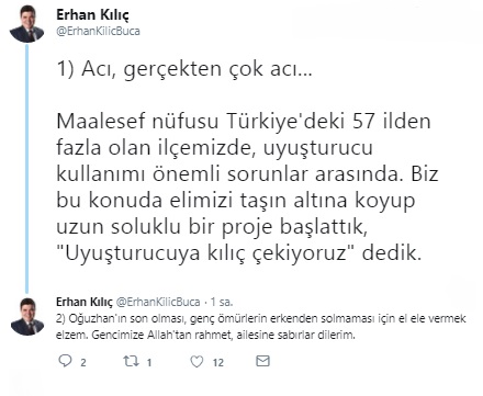 Yaşanan talihsiz olayın ardından uyuşturucu ile mücadele üzerine önemli mesajlar veren Başkan Kılıç, sosyal medyadan paylaşımlarda bulundu. İşte Başkan Kılıç'ın paylaşımları,