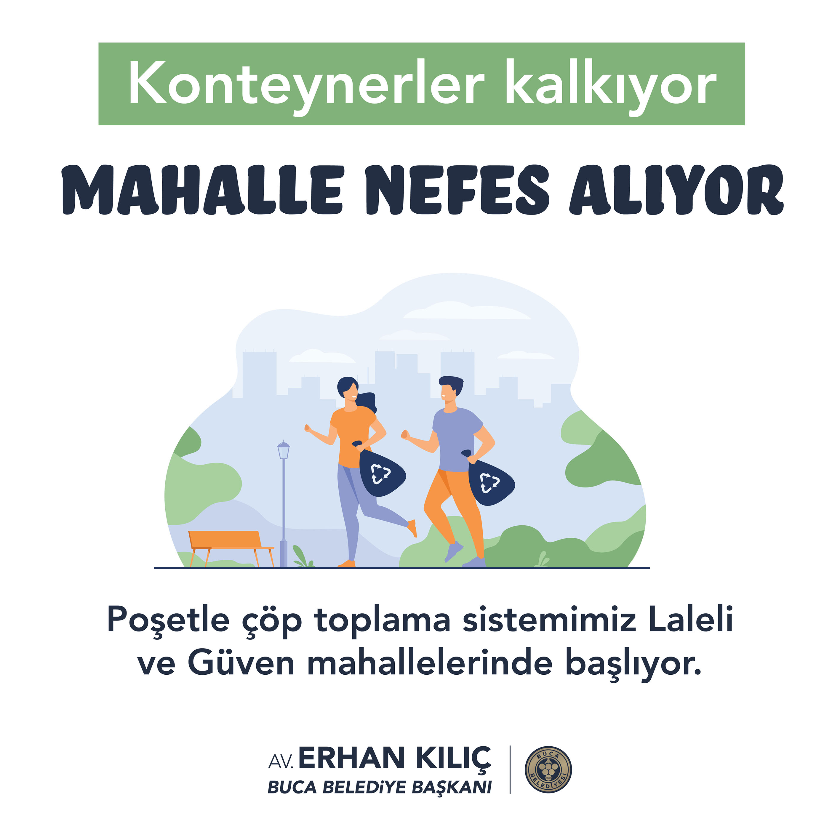 Buca Belediye Başkanı Erhan Kılıç’ın ekim ayında kentin alışveriş ve dinlenme merkezlerinden Forbes Sevgi Yolu’nda başlattığı yeni atık toplama sistemi hem esnaftan hem de vatandaşlardan büyük ilgi gördü. Belediye, daha temiz bir kent yaratmak için uygulamanın kapsamını genişleterek Laleli ve Güven mahallelerini de programa aldı. Ay sonunda hayata geçirilecek yeni uygulama ile mahallelerdeki çöp konteynerleri kaldırılacak. Uygulama ile sabah 08.00 ve akşam 18.00 saatlerinde poşetle atık toplama sistemi getirilecek. Vatandaşlar, belirtilen saatlerde çöp poşetlerini ev, apartman veya iş yeri kapısının önüne çıkartacak. Belediyenin araçları da o saatlerde mahalleye girerek çöp ve atıkları toplayacak. Çöp ve atıklarını belirtilen saat ve usuller dışında atan kişilere ise Kabahatler Kanunu uyarınca cezai işlem uygulanacak.