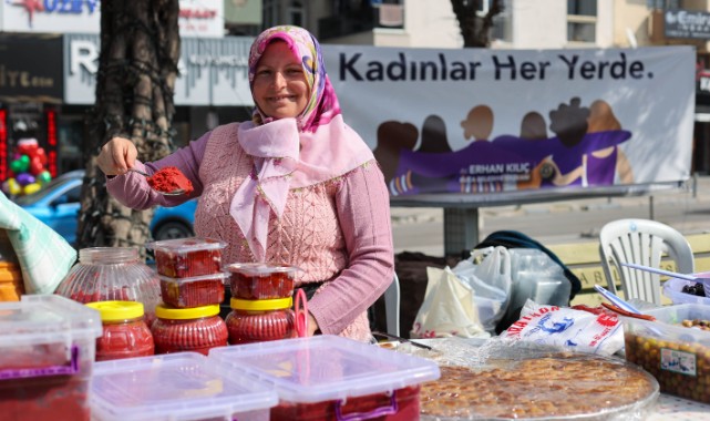 Buca Belediyesi önünde kurulan Üretici Kadınlar Pazarı’nda, belediyenin kursiyerleri ile köyler bölgesinden kadınlar tezgâh açtı. Vatandaşların yoğun ilgi gösterdiği pazarda takıdan dekoratif süslere, gözlemeden sarmaya, zeytinden pekmez ve reçele kadar birçok ürün uygun fiyatla satışa sunuldu.