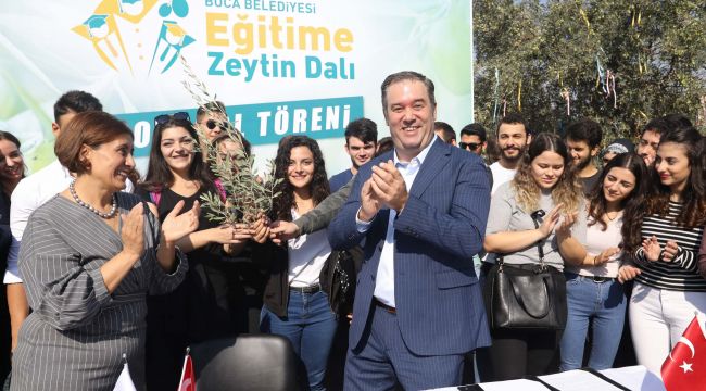 Türkiye genelindeki verimli tarım arazileri giderek yok olurken, İzmir Buca Belediyesi atıl durumdaki 175 bin metrekare tarım arazisini zeytin ormanına dönüştürüp, üniversite öğrencilerine yıllık yaklaşık 1 MilyonTL burs sağlayacak “Eğitime Zeytin Dalı” projesini hayata geçirdi. Belediye, Türkiye’de bir ilk olan, tarımı, eğitimi, kırsal kalkınmayı ve doğayı kapsayan uzun soluklu dev projenin burs dağıtım protokolünü üniversite gençliğinin katıldığı törenle Ege Çağdaş Eğitim Vakıf ile imzaladı.
