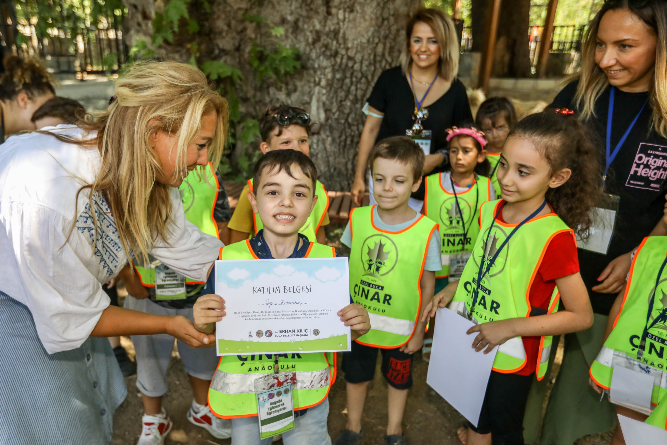 Buca Belediyesi İzcilik ve Doğa Sporları Merkezi’nde gerçekleştirilen “Doğada Eğlenerek Öğreniyoruz” adlı doğa kampı etkinliğinde, anaokulunun minikleri hem eğlendi hem öğrendi.