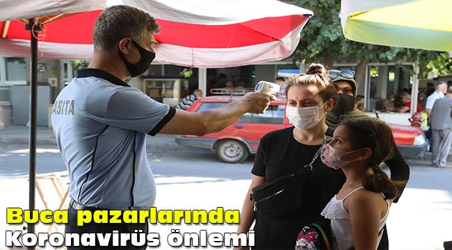 Virüsün bulaşma riskini en aza indirmek için semt pazarı girişlerinde ateş ölçümü gerçekleştiren Buca Belediyesi , vatandaşları , pazar giriş noktalarına yerleştirilen dezenfektan ünitelerinde ellerini dezenfekte ettikten sonra alışveriş yapmaları konusunda düzenli olarak uyarıyor.