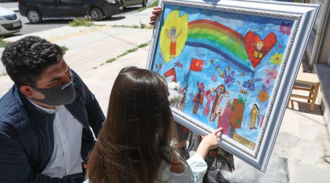 Yarışmada birincilik elde eden Esma Gül Shakenov’u, Buca Belediye Başkanı Av. Erhan Kılıç evinde ziyaret ederek tebrik etti. Minik Esma Gül’e etkinlikte kazandığı çeyrek altın ve Nutuk’u hediye eden Kılıç, annesi Şeyma Gül’e ise çocuğunun yapmış olduğu resmi çerçeveleterek hediye etti. Renkli görüntülerin yaşandığı buluşmada Esma Gül Başkan Kılıç’a yaptığı resmi anlattı.