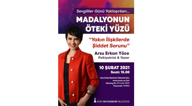 İzmir Büyükşehir Belediyesi, kadına yönelik şiddetle mücadelede farkındalığı arttırmak için çalışmalarını sürdürüyor. Büyükşehir Belediyesi, 10 Şubat saat 15.00’te psikiyatrist yazar Arzu Erkan Yüce’nin katılımıyla “Madalyonun Öteki Yüzü: Yakın İlişkilerde Şiddet Sorunu” konulu çevrimiçi bir seminer düzenliyor. Katılımın 300 kişiyle sınırlı olduğu etkinliğin kaydı, 14 Şubat’ta İzmirTube üzerinden yayınlanacak.