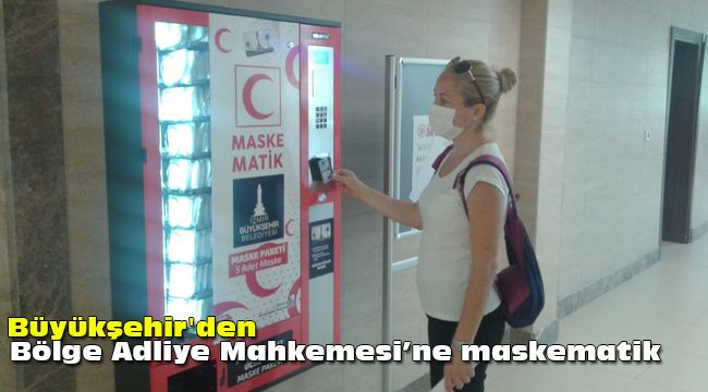 İzmir Büyükşehir Belediyesi koronavirüs salgınıyla mücadele kapsamında başlattığı maskematik uygulamasını İzmir Bölge Adliye Mahkemesi’ne de taşıdı. Metro istasyonları ve vapur iskelelerine yerleştirdiği maskematiklerin ardından metronun olmadığı yerlerde seyyar maskematik uygulamasını başlatan Büyükşehir Belediyesi, Konak ilçesinde bulunan İzmir Bölge Adliye Mahkemesi’nin girişine de maskematik yerleştirdi. Mahkemede çalışan hakim, savcı, avukat ve çok sayıda personelin tıbbi maskeye erişimini kolaylaşacak. Çalışanlar İzmirim Kart’ını okutarak yedi günde bir içinde 5 adet maske olan maske paketinden ücretsiz alabilecek. İzmir Büyükşehir Belediyesi önümüzdeki hafta Bayraklı Adliyesi’ne de maskematik yerleştirecek.