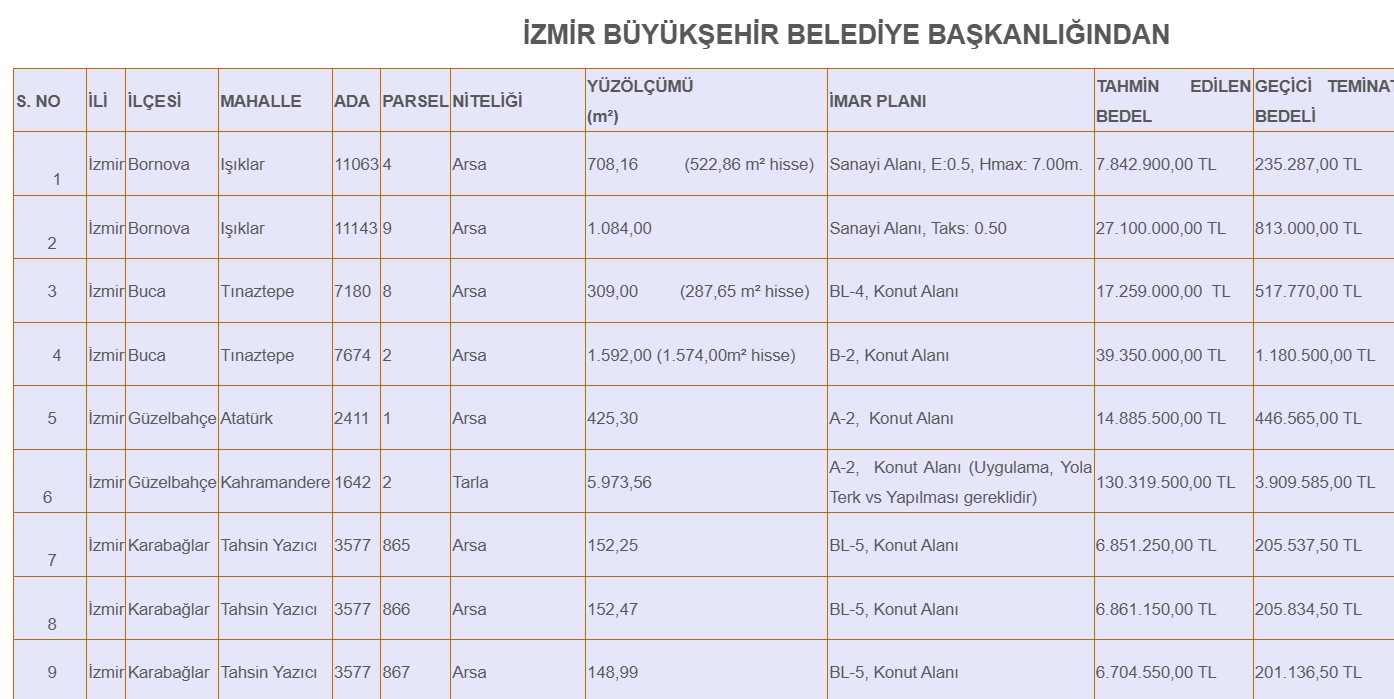 Sanayi, merkezi iş alanı, konut alanı gibi bölgelerde bulunan taşınmazların ihalesi; 13 Mart 2025 Çarşamba günü, İzmir Büyükşehir Belediyesi Mimar Sinan Mahallesi Kültürpark İçi 2 No'lu Holde, saat 14.00’te başlayıp 5'er dakika aralıklarla devam edecek ve 15.15’te sona erecek..png)