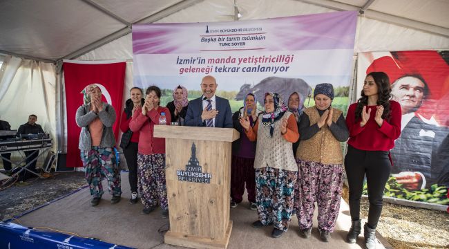 İzmir büyükşehir Belediyesi manda yetiştiriciliğini canlandırmak için Selçuk'ta dokuz kadın üreticiye 28 manda hibe etti. Tunç Soyer, "Hedefimiz manda sütünden katma değeri yüksek, İzmir’e özgü ve tüm dünyaya pazarlayacağımız İzmir mozerellası gibi ürünler üretmek" dedi.