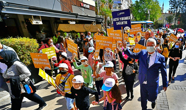 İzmir Büyükşehir Belediyesi, Uluslararası Okula yürüyüş Günü’nü etkinliklerle kutladı. Bu yıl Türkiye’de ve İzmir'de ilk kez düzenlenen “Okula Yürüme” etkinliğinde çocuklar hem yürüyüşün faydalarını öğrendi hem de etkinliklerle keyifli bir gün geçirdi. İzmir Büyükşehir Belediyesi Başkan Vekili Mustafa Özuslu da Kültürpark'taki etkinliğe katılarak Alsancak Melih Özakat İlkokulu, Gazi Ortaokulu ve Nevvar Salih İşgören İlkokulu’nda okuyan öğrencilere okul yolunda eşlik etti. İzmir Büyükşehir Belediyesi Bandosu eşliğindeki yürüyüşte “Aktif yürümek sağlıktır”, “Yaşam boyu sağlık için yürü”, “Okul yolu çok eğlenceli”, “Okul yolumu keşfediyorum” dövizleri açıldı.
