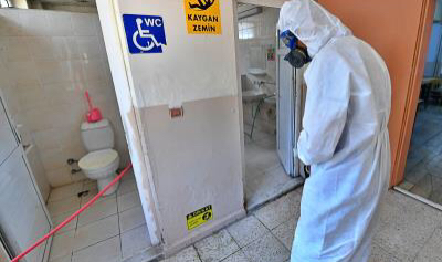 Koronavirüs salgınıyla mücadelede İzmir Büyükşehir Belediye Başkanı Tunç Soyer’in başlattığı “Kriz Belediyeciliği” uygulamaları doğrultusunda başta toplu ulaşım araçları, okullar ve kamuya açık alanlarda temizlik ve dezenfeksiyon çalışmalarını aralıksız sürdüren İzmir Büyükşehir Belediyesi, yeni eğitim ve öğretim yılına öğrencilerin sağlıklı bir başlangıç yapması için okullarda hijyen seferberliği başlattı. Yıl içinde devlet okullarında belirli aralıklarla dezenfeksiyon çalışması yapan, ateş ölçer, hijyenik paspas ve paspaslarda kullanılmak üzere dezenfektan dağıtan Büyükşehir Belediyesi, 6 Eylül’de yüz yüze başlayacak 2021- 2022 eğitim-öğretim döneminden önce tüm okulları dezenfekte ediyor. 27 ekip, 400 personelle yürütülen çalışmalar kapsamında bin 600 okulda ekipler dezenfeksiyon işlemi yapıyor.