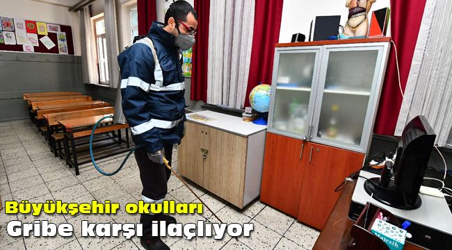 İzmir Büyükşehir Belediyesi özellikle kış aylarında artan grip hastalığına karşı çocukları korumak için okulları ilaçlıyor.