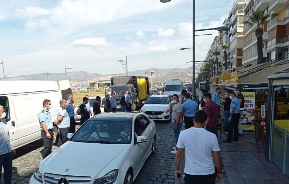 İzmir Büyükşehir Belediyesi zabıtası Kordan’da kurallara uymayan, kaldırıma masa-sandalye koyan esnafa yönelik operasyon yaptı. Operasyon sırasında esnafla-zabıta karşı karşıya geldi.