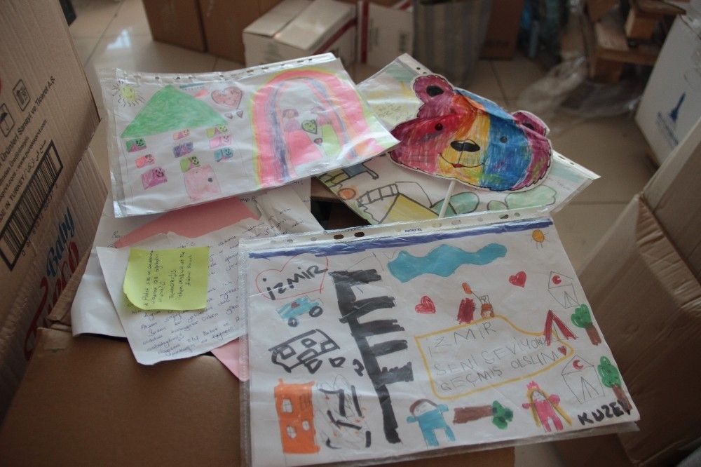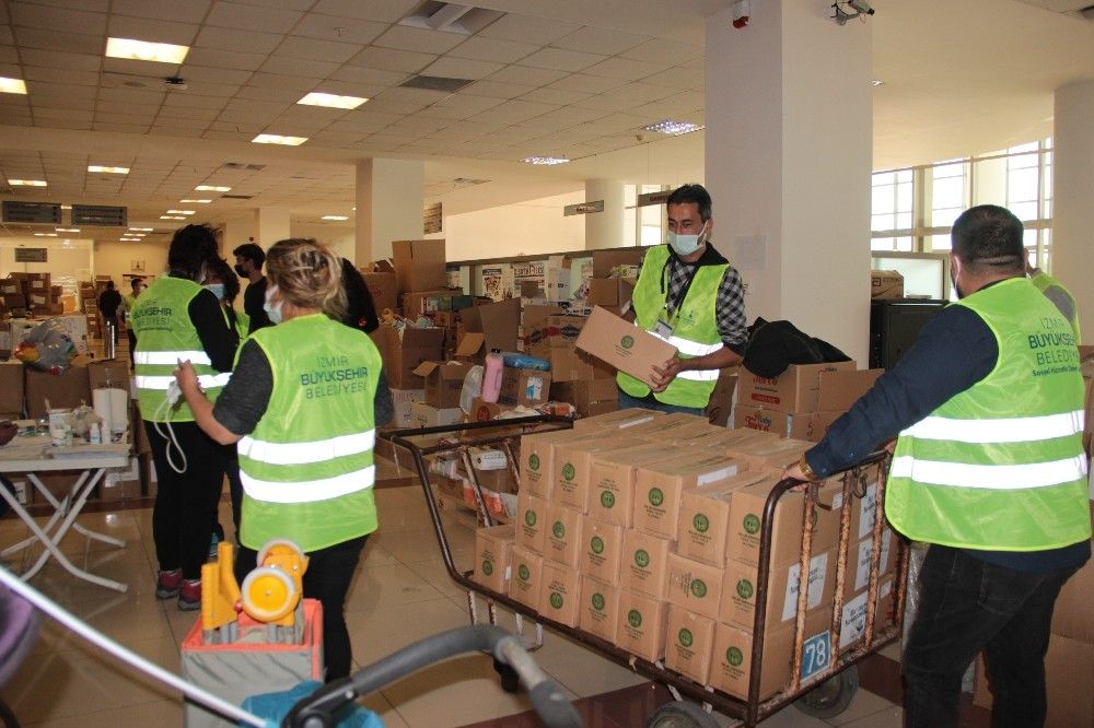 İzmir Büyükşehir Belediyesi, İzmir'deki depremin ardından evleri yıkılan ya da hasarlı olduğu için evlerine giremeyen vatandaşların ihtiyaçlarını karşılamak amacıyla yardım malzemelerini iki ayrı alanda topluyor. Aynı zamanda çadır kentin bulunduğu Aşık Veysel Rekreasyon Alanı'ndaki merkeze, daha çok bireysel yardımlar kabul ediliyor, depremzedeler bu merkeze gelerek ihtiyaçlarını tedarik ediyor. Kurumsal yardımlar ise Fuar İzmir'deki hollerde toplanarak depremzedelere ulaştırılıyor. İhtiyaç listeleri duruma göre sık sık güncellenirken, bu listeler belediyenin sayfalarında paylaşılıyor. Depremzedelerin kullanması için şu sıralara en çok büyük beden kıyafetlere, tesettür giyime ve çocuk mont ve botlara ihtiyaç olduğu ifade edildi. Öte yandan yardım kolilerinden çıkan notlar arasında çocukların depremzede çocuklar için çizdiği resimler dikkat çekti.