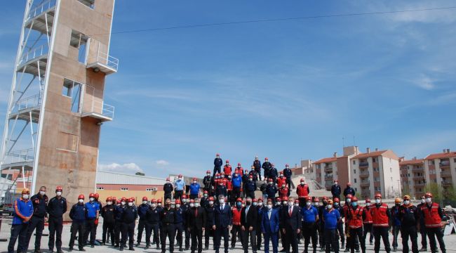 İzmir İl Afet ve Acil Durumu Müdürü Kartal Muhcı ise "Ülkemiz afet ülkesi. İzmir'de yaşadığımız depremde, kurtarma ekiplerimiz bölgede görev yaptı. Enkaz altından canlılarımızı çıkarttık, yeri geldi maalesef cansız bedenlerimizi çıkarttık. 21 yıldır bu işin içinde olan biri olarak söylüyorum; CEKUT ekiplerinin enkaza yaklaşımları, enkaza girişleri çok profesyonelceydi. Hem sizlere hem de eğitmenlerimize çok teşekkür ediyorum" sözlerine yer verdi. Konuşmaların ardından İzmir Cumhuriyet Başsavcısı Kamil Erkut Güre, İzmir İl Afet ve Acil Durumu Müdürü Kartal Muhcı'ya plaket takdim etti. Muhcı da, 2021 yılının afet eğitim yılı olması sebebiyle Güre'ye deprem çantası hediye etti.