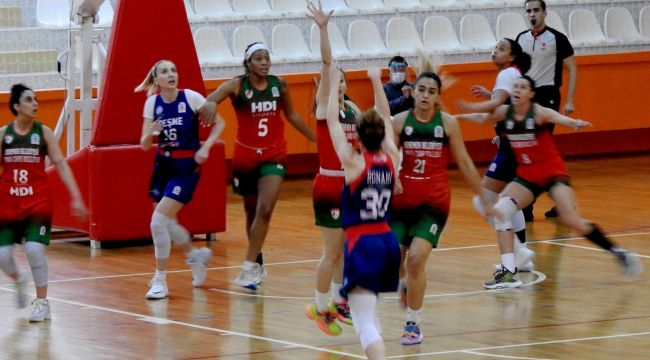 Ligin 29. haftasında, Atatürk Çeşme Kapalı spor Salonu'nda, Menemen Belediyesi Karşıyaka Çarşı Koleji ile karşılaşan Çeşme Kadın Basket Takımı, maçın başında elde ettiği üstünlüğü, 4 periyotta da korumayı başararak, rakibini farklı yendi.