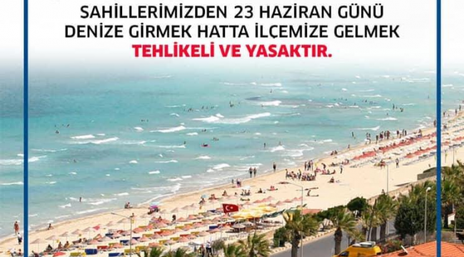 Çeşme Belediyesi sosyal medyada, İstanbulular'a yönelik yayınladığı afişli mesajla, "Fırtına nedeniyle 23 Haziran'da Çeşme'de denize girmek, hatta ilçemize gelmek tehlikeli ve yasaktır" dedi.