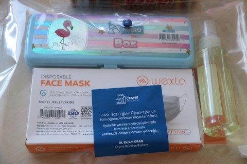 12 Ekim itibariyle okullarda yüz yüze eğitimlere başlayan 2.3.4.8. ve 12. sınıf öğrencilerine dağıtılan kitlerde maske, kolonya, kalemlik, süt ve bisküvi bulunuyor. hijyen kiti ile çocukların okulda bulundukları süre içerisinde kişisel hijyenlerine daha fazla özen göstererek,virüse karşı öz bakım bilinci kazanmaları amaçlanıyor.