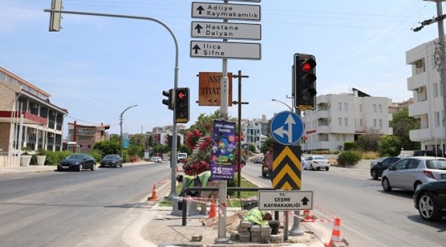 Dünyanın pek çok gelişmiş kentinde uygulanan akıllı, çevreci, engelli dostu “Tam Adaptif Trafik Yönetim, Denetim ve Bilgilendirme Sistemi”ni Türkiye’de ilk kez İzmir’de devreye alan Büyükşehir Belediyesi, Çeşme’de yaz sezonunda yaşanan trafik sorununu çözmek için yapım çalışmalarına başladı. Kavşakların altına, araçların algılanarak kavşak kollarındaki trafik yükünü ölçebilecek ve gereksiz beklemelerin önüne geçecek manyetik sensörler döşeniyor. Ayrıca kırmızı ışık ihlali tespit sistemi sayesinde ihlal yapan araçların plakaları da otomatik olarak algılanabilecek.
