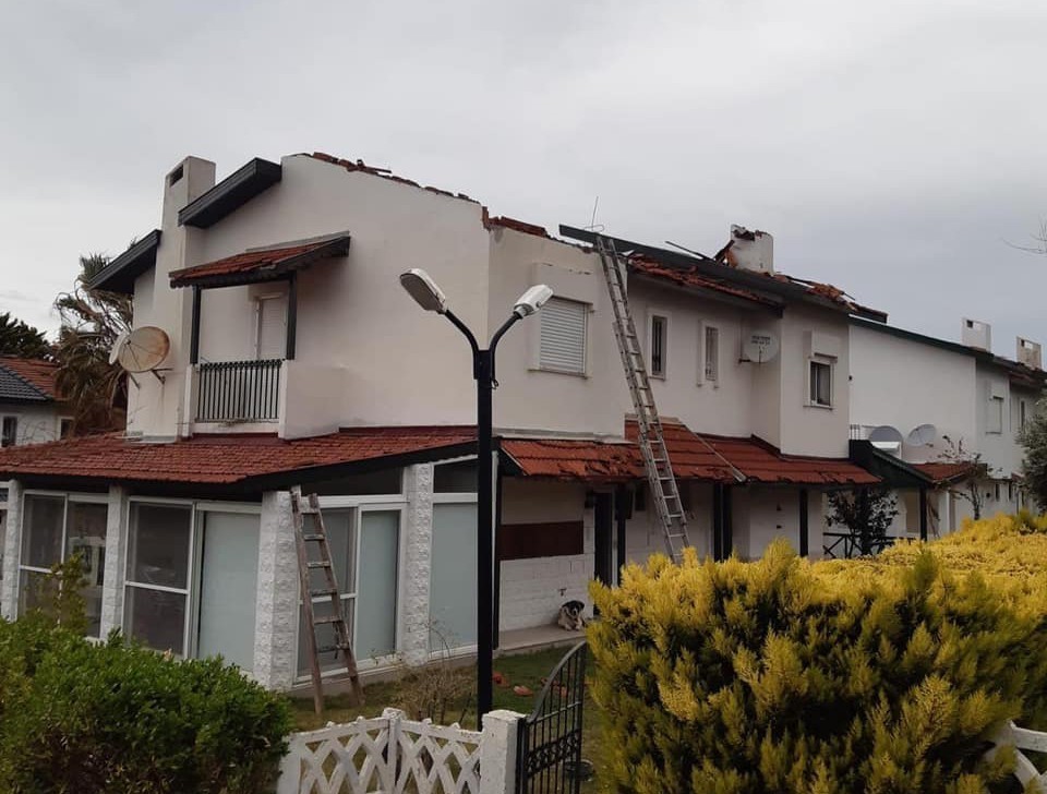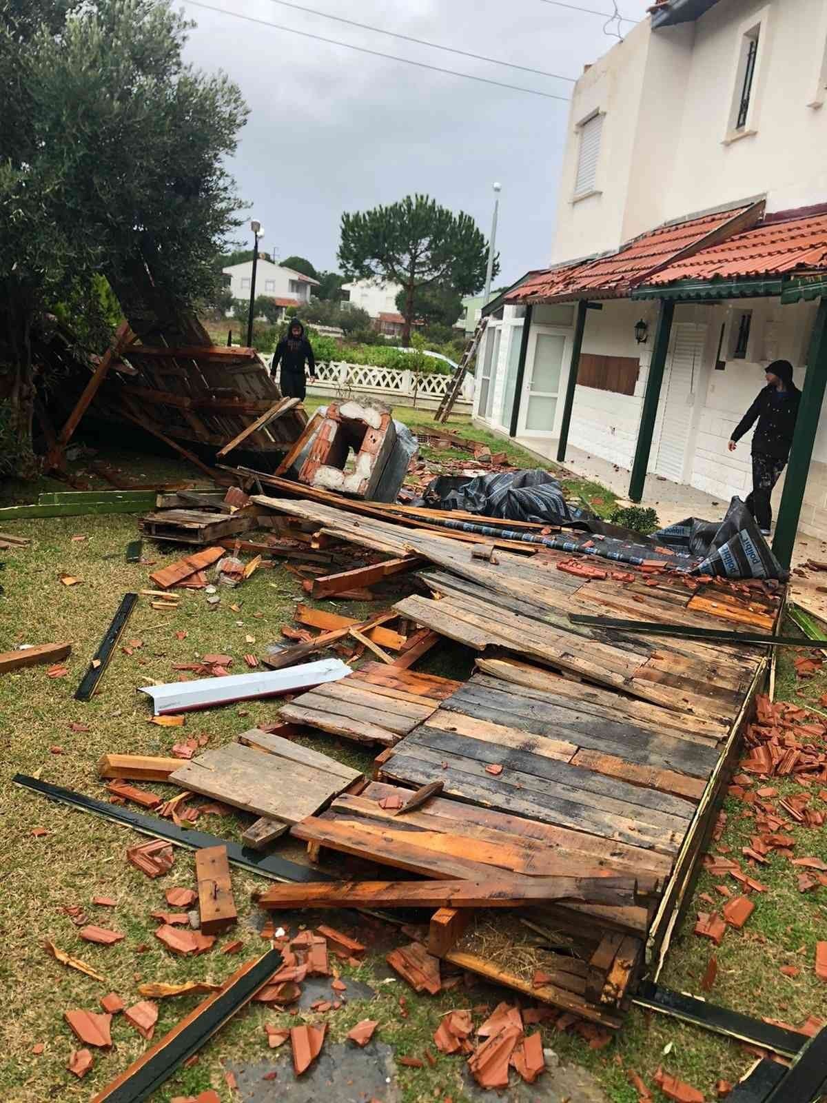 İzmir'in Çeşme ilçesinde, sabah saatlerinde çıkan hortum, evlerin çatılarına zarar verdi.