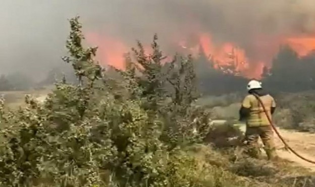 İzmir Büyükşehir Belediye Başkanı Tunç Soyer, Çeşme Çiftlikköy'de çıkan yangını kontrol altına almak için ekiplerin çalışmalarının sürdüğünü söyledi.