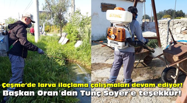Yıl boyunca larva, uçkun ve haşerelere karşı mücadele çalışmaları Çeşme Belediyesi Temizlik İşleri Müdürlüğü koordinesinde İzmir Büyükşehir Belediyesi tarafından oluşturulan 6 ayrı ekip ile belirli bir program dahilinde periyodik olarak yapılmaya devam ediyor. Karasinek ve sivrisinek ile mücadele kapsamında; ilçedeki tüm çöp konteynırları, çöp toplama alanları, hayvan barınakları, kamusal alanlardaki park, bahçe, yol kenarı vb yerlerdeki ağaç ve yeşil alanlar bitki zararlılarına karşı vatandaşların rahatça kullanabilmeleri için ilaçlanıyor.