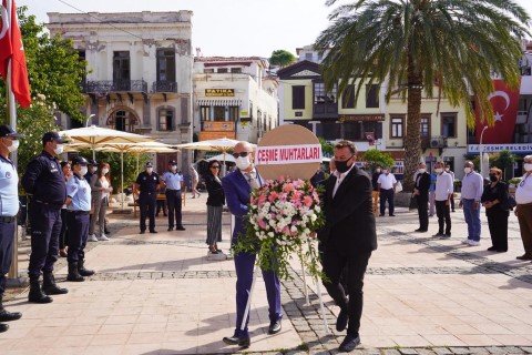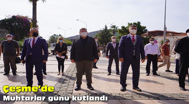 19 Ekim muhtarlar Günü kapsamında Cumhuriyet Meydanı’nda Atatürk Anıtı’na çelenk sunma töreni gerçekleştirildi. Törene Çeşme Kaymakamı Ünal Çakıcı, Çeşme Belediye Başkanı M. ekrem Oran, Garnizon Komutan Vekili Asteğmen Bilal Bayat, Çeşme Cumhuriyet Başsavcısı Burak Kocaoğlu, İlçe Emniyet Müdürü Gürcan Alev, İlçe Jandarma Komutanı Yarbay Emin Yılmaz, Sahil Güvenlik Bot Komutanı Yüzbaşı Önder Bulut, İlçe Nüfus Müdürü Murat Şen, meclis üyeleri ve mahalle muhtarları katıldı.