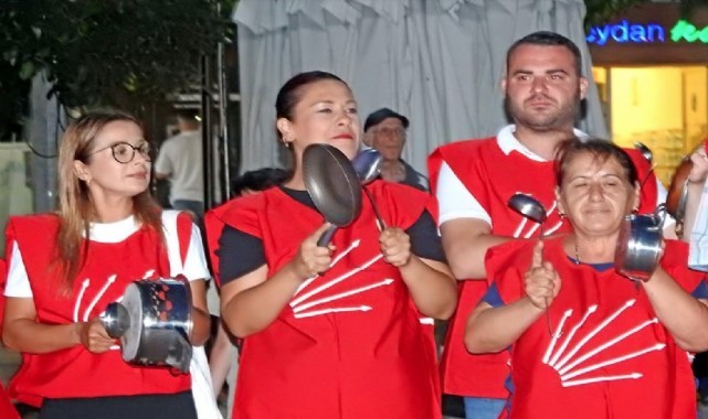 CHP Genel Başkanı Özgür Özel'in geçim sıkıntısı çeken herkesi akşamları saat 21.00'de ışık yakıp söndürmeye çağırmasının ardından CHP Çeşme İlçe Örgütü, Cumhuriyet Meydanı'nda toplanıp, tencere tava çalarak, "Geçinemiyoruz" diye ses yükselttiler.
