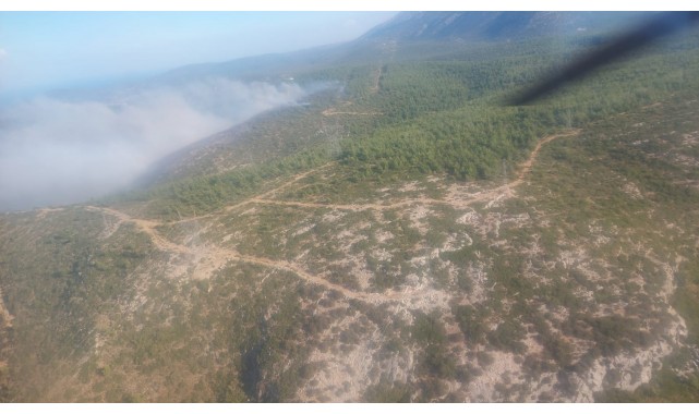 İzmir'in Çeşme ilçesinde ormanlık alanda yangın çıktı. Ekiplerin yangına havadan ve karadan müdahalesi sonucu yangın kısmen kontrol altına alındı.