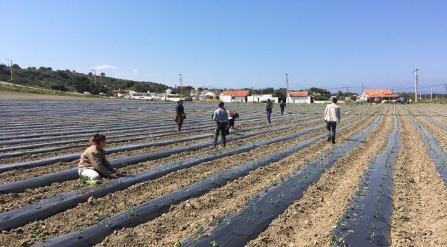 Korona virüsü salgını ile mücadelesi kapsamında ilan edilen 4 günlük sokağa çıkma kısıtlamasından muaf tutulan Çeşmeli çiftçiler, tarlalarında üretime devam etti.