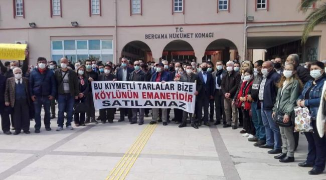 Bergama'daki verimli tarım arazilerinin Cumhur İttifakı Meclis üyelerinin oylarıyla satışına karar verilmesinin ardından eylem yapan köylülere destek veren chp Bergama İlçe Örgütü köylünün arsasına, tarlasına sahip çıkacaklarını dile getirdiler. CHP bergama İlçe Başkanı Mehmet Ecevit Canbaz, "Yol, park, borç gibi bahanelerle değerlerimizin haraç mezat satılmasının , devredilmesinin önüne geçeceğiz" dedi.