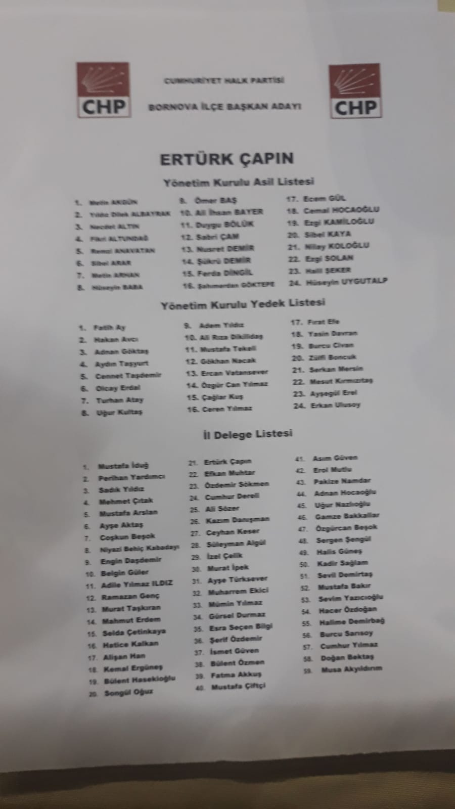 CHP Bornova kongresinde adayların listeleri belli oldu. Üç ismin yarıştığı kongrede adayların listeleri belli oldu.